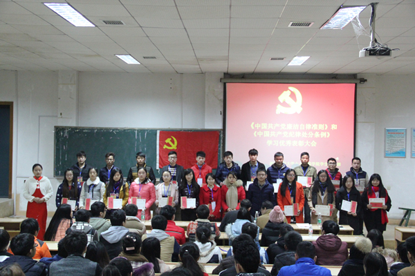 随后,召开的是优秀党员表彰大会。此次会议,是根据《中国共产党廉洁自律准则》及《中国共产党纪律处分条例》,对球王会表现优秀的党员进行表彰奖励。该表彰大会的奖项分别是“优秀组织奖”和“优秀蹲点党员”。在会议主持人的名单宣读后,被表彰的各位党员分批上台,由易书记和曾老师亲自为他们颁发证书并合影留恋,希望他们再接再厉,为党效力,为人民服务。