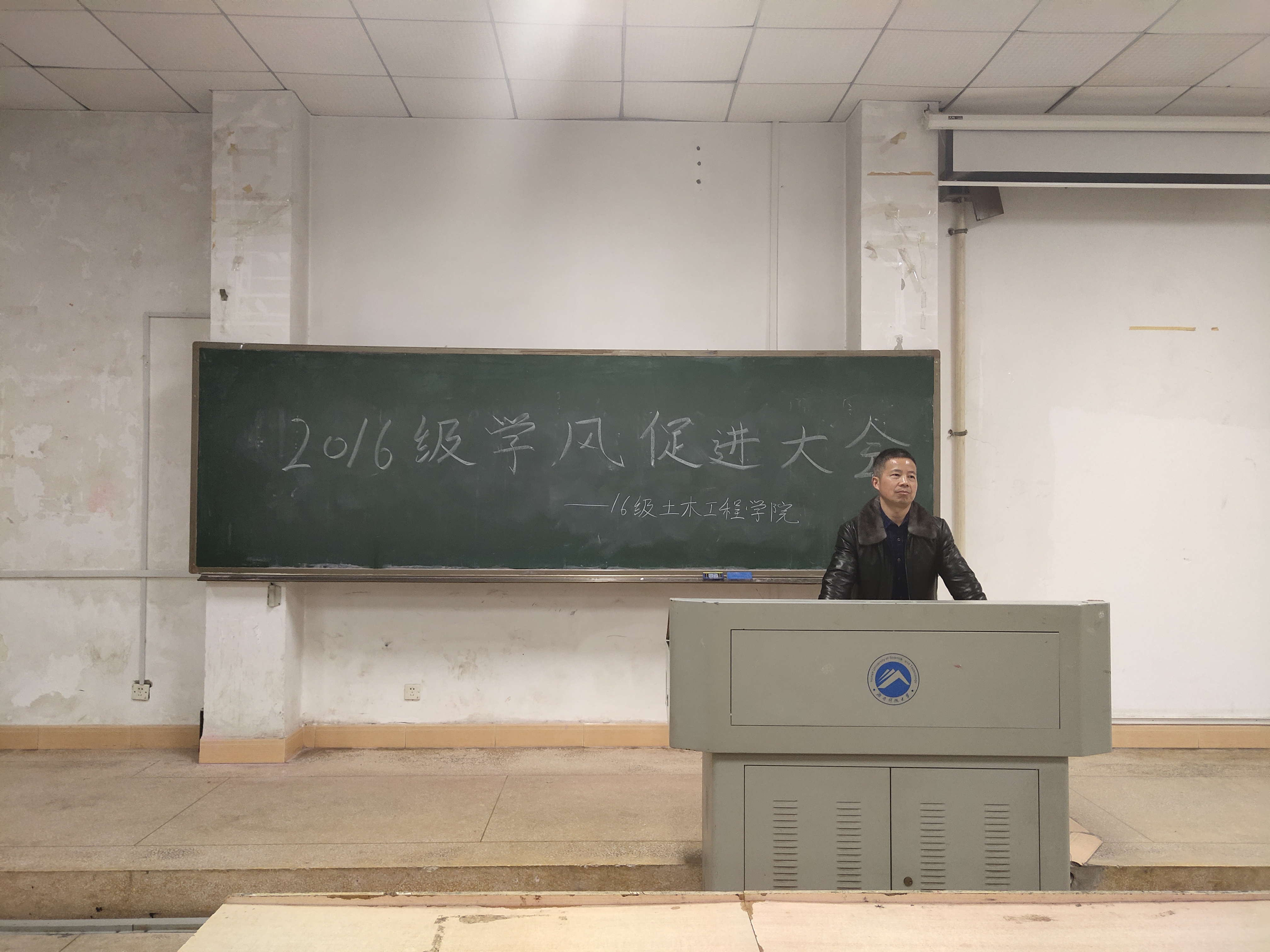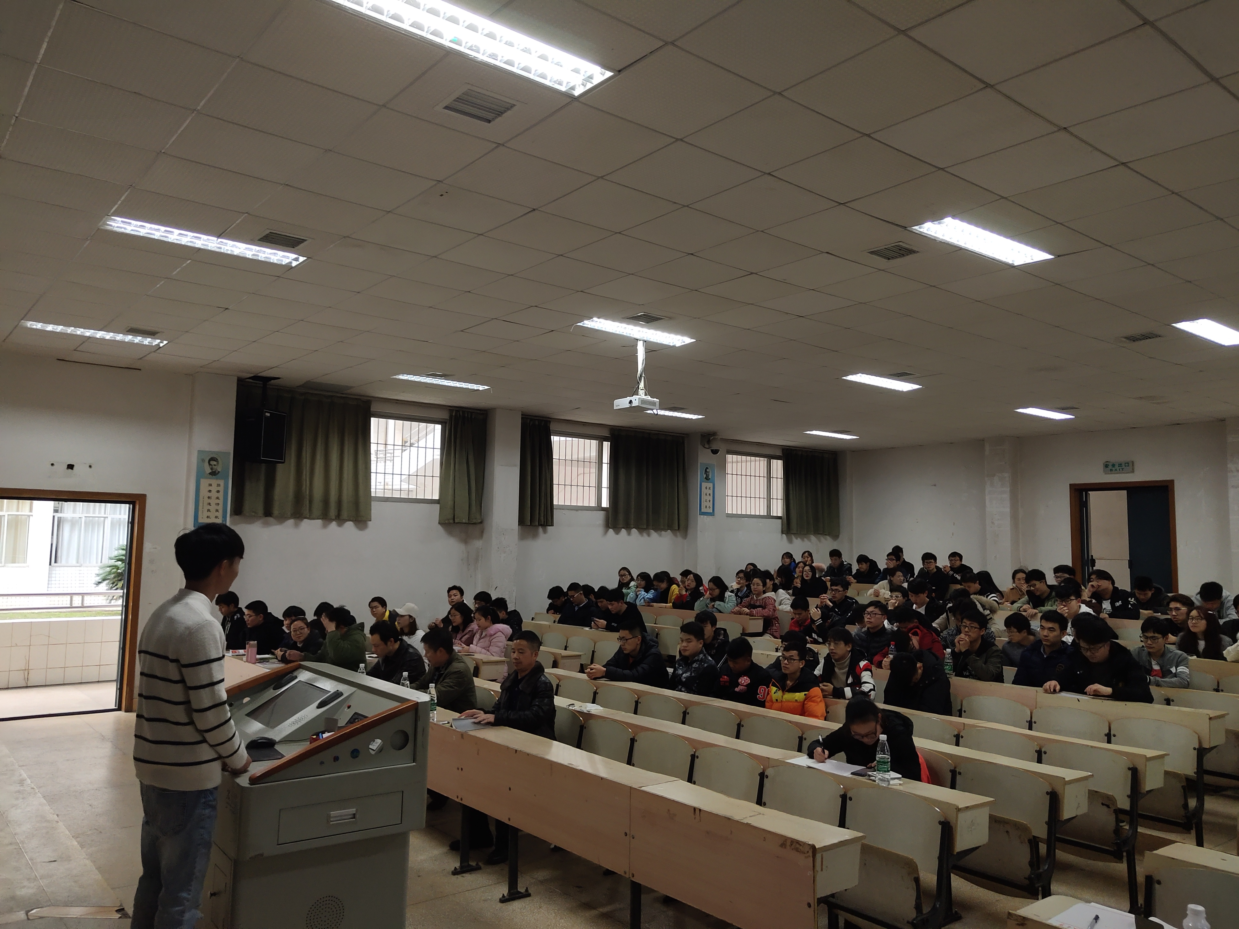 在2020年考研动员大会中,院学工办主任虢利钢首先上台发言,他为16级全体考研同学解释了为什么要考研,从专业知识储备、意志力、综合素质综合能力三个方面阐述了对考研的理解,还特意强调了英语在研究生考试的重要性。随后上场讲话的肖鹏飞老师将考研比作一次旅行,既要注重结果,又要享受过程,他还引用习近平总书记的演讲词阐述了青春、奋斗与幸福的关系。程书记则从为什么有压力和培养一个良好的学习习惯两方面进行了考研动员。