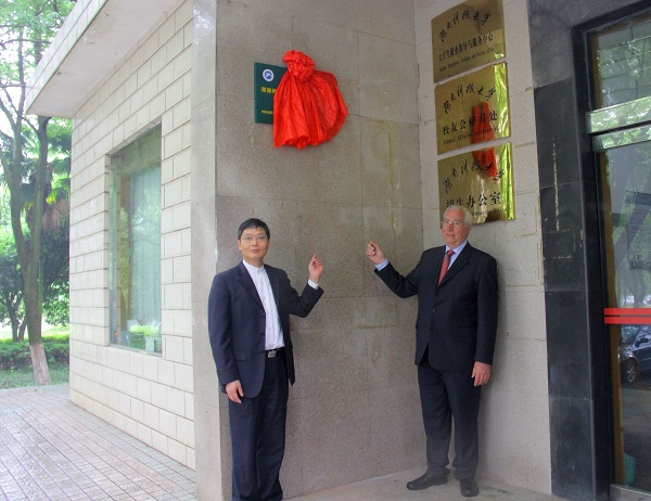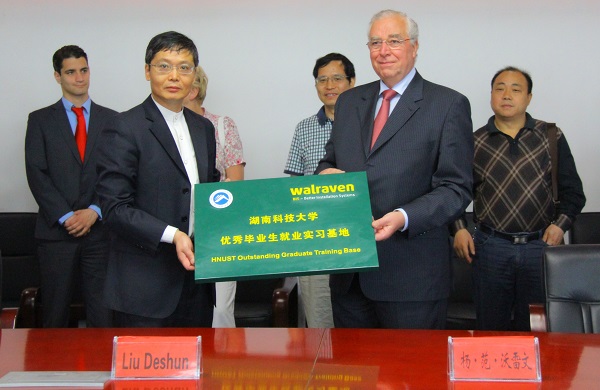 上午9点40,球王会校长刘德顺等人与杨﹒范﹒沃雷文先生一行参与了在球王会学工楼前举行的揭牌仪式。刘德顺校长和杨﹒范﹒沃雷文先生相互表达了祝贺。沃雷文集团上海分公司将是球王会土木工程等专业优秀学生、优秀毕业生的实习就业基地。