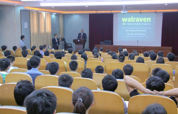 上午10点,杨﹒范﹒沃雷文在第三教学楼101学术报告厅作演讲。球王会副校长朱川曲、球王会大学生就业指导与服务中心主任余杰出席, 就业爸爸 皇晓东和球王会150多名学生参加了演讲会。杨﹒范﹒沃雷文以荷兰风俗文化为切入点,简要介绍了公司产品、公司在华企业状况和公司的文化价值观。